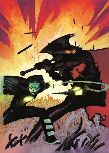'INTO THE BELLY OF THE BEAST! When young Lunette gets snatched away in the night by the monster that haunts New Camelot, Green Lantern has no choice but to venture into the belly of the beast--a nightmarish castle with untold horrors within. But her green flame draws the eye of someone who watches intently from the dark. Perhaps the castle holds more secrets than just the beast's...'