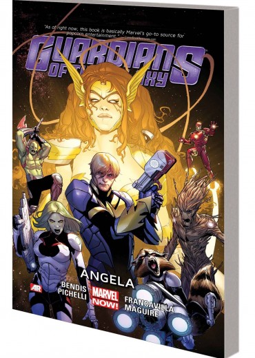 Spinning out of the dramatic conclusion of AGE OF ULTRON, dimensions collide and Heaven's most fearsome Angel arrives - and comes straight for the Guardians! Gamora, one of the galaxy's greatest warriors, holds a deadly secret that could bring down the entire team. And when Gamora battles Angela, the entire universe hangs in the balance! Then, the galaxy's most mismatched heroes find themselves at a crossroads when the effects of Infinity begin to rise. Can even the mysterious Angela's power help combat the fallout from Thanos' master plan? And what will it take for Star-Lord to betray the entire Marvel Universe? The biggest blockbuster hit of the year continues as artists Sara Pichelli and Francesco Francavilla climb aboard, and comics legend Neil Gaiman joins the team in this one-of-a-kind comic-book event! Collecting GUARDIANS OF THE GALAXY (2013) #4-10. Rated T