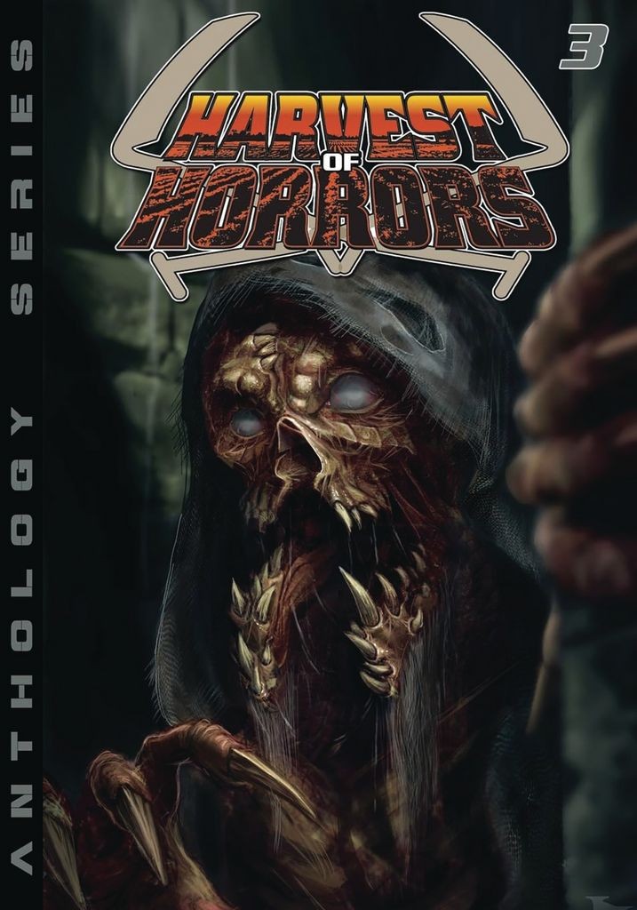 Welcome to a third season of Harvest of Horrors! For fans of Creepshow, Tales from the Crypt, and The Twilight Zone! In this new volume we bring you a crazed killer in a history making snow storm, and a carnival of evil, just to name a few. This collection contains five twisted short tales by award winning comic creators and artists. So sit back, relax if you can, and be prepared to be served up a heaping helping of horror!