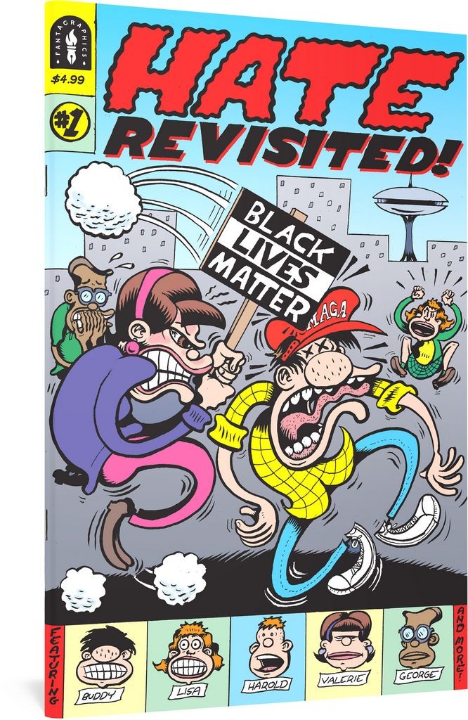 Peter Bagge returns to the series that defined a generation with this all-new, four-issue monthly miniseries! Buddy and Lisa, now middle aged with a free spirited young adult of their own, confront their own poor decisions as young people in the grungy 1990s. Expertly shifting between the present day (in full color) and their Gen X heyday (in glorious, crosshatched B&W), we learn for the first time the story of how Buddy met Lisa, Stinky, George, and Val. Meanwhile, Buddy is forced to come to terms with the tragic -- and covered-up -- circumstances of Stinky's untimely death (way back in Hate #27). Hate Revisited expertly showcases Bagge's inimitable humor and knack for character, and the generational shift lends an unexpected gravitas to their lives. This is the must-have comic of the summer!