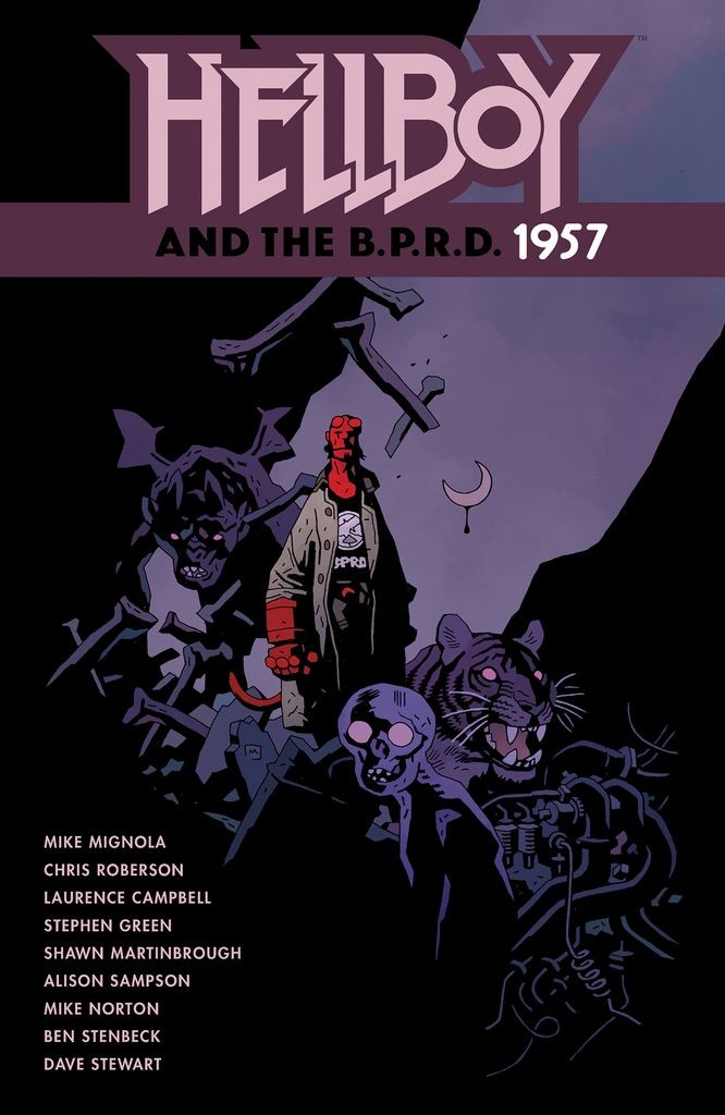All five issues of Hellboy and the B.P.R.D.: 1957 are collected in this paperback with writing by Mike Mignola and Chris Roberson, featuring art by Mignolaverse veteran Laurence Campbell (B.P.R.D.: The Devil You Know), Stephen Green (Lobster Johnson: Garden of Bones), Shawn Martinbrough (Thief of Thieves), Alison Sampson (Jessica Jones), and Mike Norton (Hellboy and the B.P.R.D.: 1956), plus the short 'Happy New Year, Ava Galluci' by Mignola and Ben Stenbeck, featuring colors by Dave Stewart and a bonus sketchbook section.