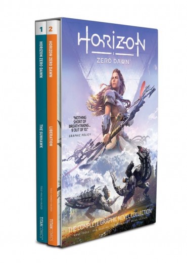 RETURN TO THE MAJESTIC, POST-APOCALYPTIC WORLD OF HORIZON AND THE STORIES OF ITS INHABITANTS IN THE COMPLETE GRAPHIC NOVEL COLLECTION FEATURING ALOY AND FAN-FAVOURITES TALANAH AND EREND, THESE STORIES EXPAND ON HORIZON ZERO DAWN, SET BEFORE, AFTER, AND DURING THE EPIC GAME. COLLECTS HORIZON ZERO DAWN VOL.1: THE SUNHAWK AND HORIZON ZERO DAWN VOL.2: LIBERATION