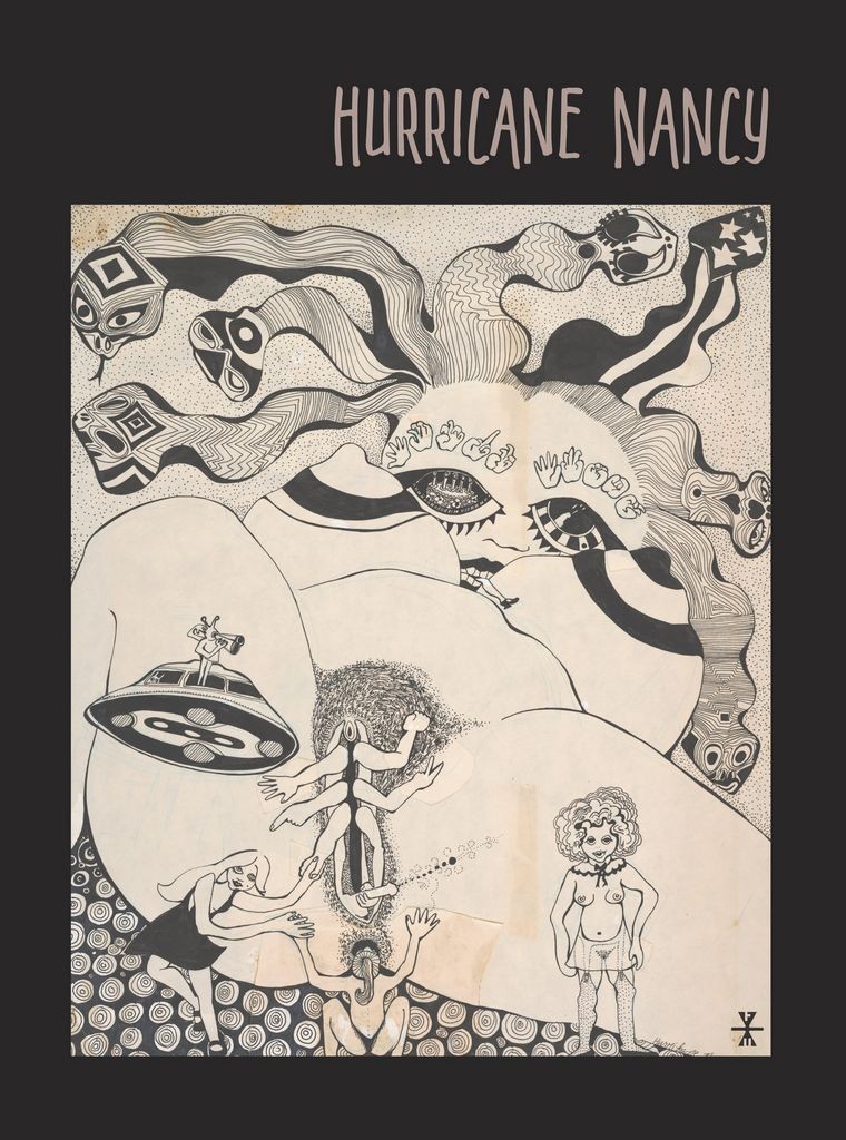 'Nancy Burton was among the earliest underground cartoonists, creating comic strips that appeared in The East Village Other (“Gentle’s Tripout”) and Gothic Blimp Works (Busy Boxes”) in 1966. Under the pen names “Panzika” and “Nancy Kalish” and most importantly, “Hurricane Nancy,” she contributed to many notable underground comix including It Ain’t Me, Babe. Drawing on abstract expressionism, art nouveau and formline art, working in parallel to the psychedelic art movement and outsider artists like Consuelo “Chelo” Amezcua, Burton’s comics feature birds and people, dreamlike landscapes, and psychedelic imagery that grows darker as the 1960s come to a close, reflecting the darkening mood of the era and her uniquely personal vision of the world. Burton stopped making art in the early 1970s and seemed to disappear, having met few cartoonists during her short tenure but making an impression on many with her unique psychedelic approach. In 2009 she began drawing again, posting artwork online without explanation and though many aspects of her work had changed, it remained indelibly her own. Hurricane Nancy is the first collection of Burton’s work ever published and reprints many of her comics and drawings from that politically tumultuous and creatively fecund period of American culture in addition to her more recent work. In an exclusive interview, Burton talks about her travels and influences, the origins of her pen names, close encounters with Timothy Leary and the Grateful Dead, the Monterey Pop Festival and the Summer of Love, and explains for the first time why she not just abandoned comics in the early ‘70s, but stopped making art entirely.'