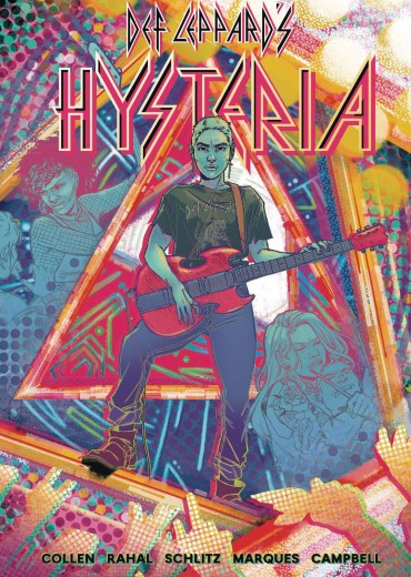 Def Leppard's Hysteria #0, the origin of the world's most dangerous guitar! Written by Phil Collen (Def Leppard) and Eliot Rahal (Bleed Them Dry) with art by Alex Schlitz and Fabi Marques. When Foz, the frontwoman of indie band Darkside, inherits her father's estate, it comes with a guitar she half-remembers from her childhood. The guitar speaks to her, promising fame and success. Soon, it delivers. But when Darkside's equipment is stolen at a massive music venue, just before they're set to take the stage with Def Leppard, Foz goes on the warpath to get it back. A knuckle-dusting rampage ensues, and the guitar's true history is revealed.