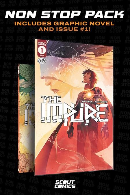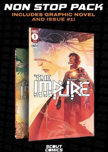 'A NONSTOP collector's pack! This beautifully designed hangable package (measures 8.5 x 12.75) includes a collectible first issue (bagged and boarded) and the complete trade paperback! When Castor, homeworld to the siblings Nero and Minerva, is destroyed by aliens, they decide to join the dreaded Impure, living weapons who are created by merging elite soldiers with god-like beings. When Minerva unexpectedly betrays her brother and all they ever believed in, it falls to Nero to stop his sister before she reaches the alien alliance. Can he stop her before what she stole can turn the tides of war and spell humanity's downfall?'