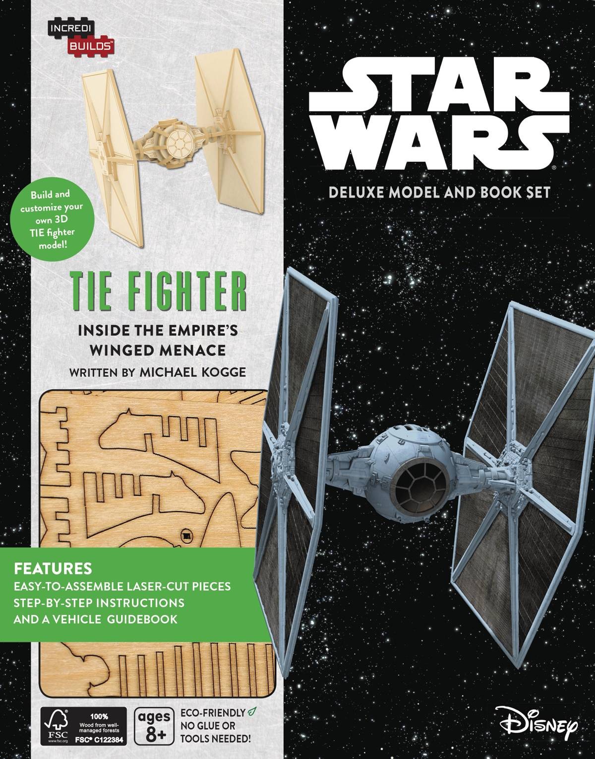Build your own TIE Fighter with this IncrediBuilds: Star Wars model kit, featuring a full-color booklet filled with fascinating facts and trivia and awesome imagery of the craft in action. The full-color book includes everything you need to know about the TIE Fighter, from basic flight and weapons capabilities to pilot training, notable battles, and the wide variety of TIE Fighter models, such as the TIE Interceptor and TIE Bomber. The wooden model is easy to assemble and snaps together to form a dynamic, displayable 3D version of this fan-favorite Star Wars spacecraft.