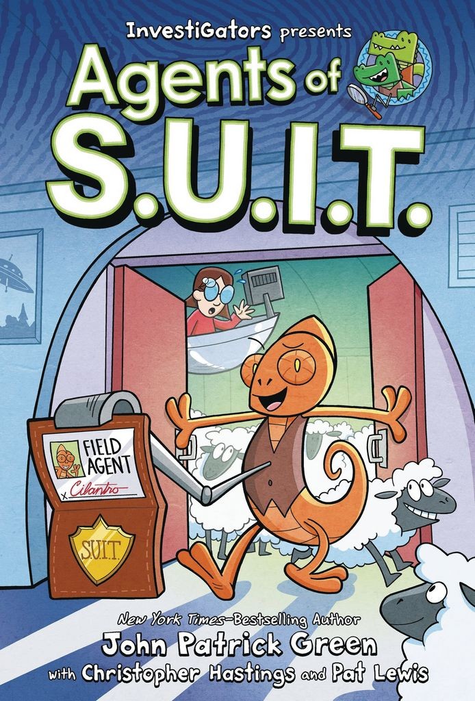 The world of John Patrick Green's kid-favorite InvestiGators series expands with the first volume of Agents of S.U.I.T., a brand-new spinoff shining a light on some of Mango and Brash's colorful coworkers. Cilantro the Chameleon finally gets what she's been waiting for: a field assignment. Only. it's literally out in the middle of a field, and her orders are so vague, she can hardly tell what she's supposed to be investigating. But as she begins to uncover a sheep-led worker's rights revolt and an alien invasion conspiracy-not to mention a spooky haunting at the abandoned S.U.I.T. field outpost-Cilantro steps into her own V.E.S.T. as a valued member of the team.