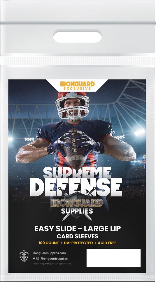 Toploaders and semi-rigid card sleeves are a great way to protect your cards, but getting the cards in and out? THAT's tough. That's why we've developed new 'Easy Slide' penny sleeves that are designed to go INSIDE an outer layer of protection. They have a longer lip, so getting them in and out is easy, like the name! Choose from small lip for getting out of toploaders and large lip for getting out of semi-rigid cardholders. Sold in bags of 100, because 101 seemed like overkill.