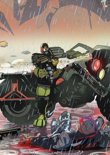 More action and adventure in the future-shocked world of Judge Dredd! Dredd is trapped on an oil rig with a hungry monstrosity in 'Ravenous'; the heavy-weapons team deal with mutie cultists in 'Harrower Squad'; there's another complete Tale From the Black Museum; and Devlin Waugh is back and dealing with a serial killer in 'Toxic Avenger.' Plus interviews, features, and much more!