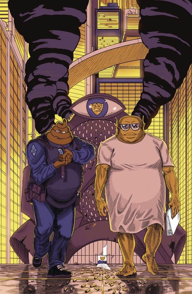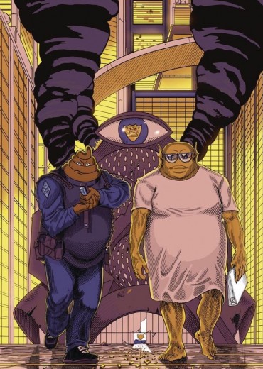 In the outrageous new book that Boing Boing calls 'all the glorious dystopian satire you hoped it would be,' Swamp Cop, Schitt, and the rest of the force are under siege as the Libra Gang mounts an assault on police headquarters! Meanwhile, Bubble City's ruling Prince grows extremely distraught over his plummeting poll numbers.