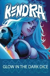 DYNAMITE DICE FOR DUNGEON CRAWLS, DAILY DEALS, OR DERRING-DO! LIVE OR DIE BY THE DIE! Prepare to cast in your fate with Kendra, Ben Dunn's swordmistress for hire, with this special set of custom dice for all your RPG needs! The set includes 1D4, 1D8, 1D6, 2D10, 1D12, and 1D20, and they even GLOW IN THE DARK, so you can use them to simulate casting Fireball! Kendra's luck may not be the best, but surely yours will be better!