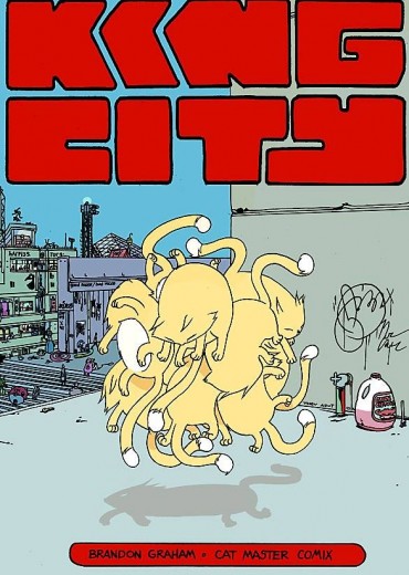 story / art / cover BRANDON GRAHAM AT LAST! The long-awaited collection of the complete KING CITY series is here, full of full on comic book games, puzzles and wordplay! Joe is a catmaster, trained to use his cat as any tool or weapon. His best friend Pete falls in love with an alien he's forced to sell into green slavery, while his ex Anna watches her Xombie War veteran boyfriend turn into the drug he's addicted to. King City, an underbelly of a town Run by spy gangs and dark dark magic with mystery down every alleyway. Collects KING CITY #1-12