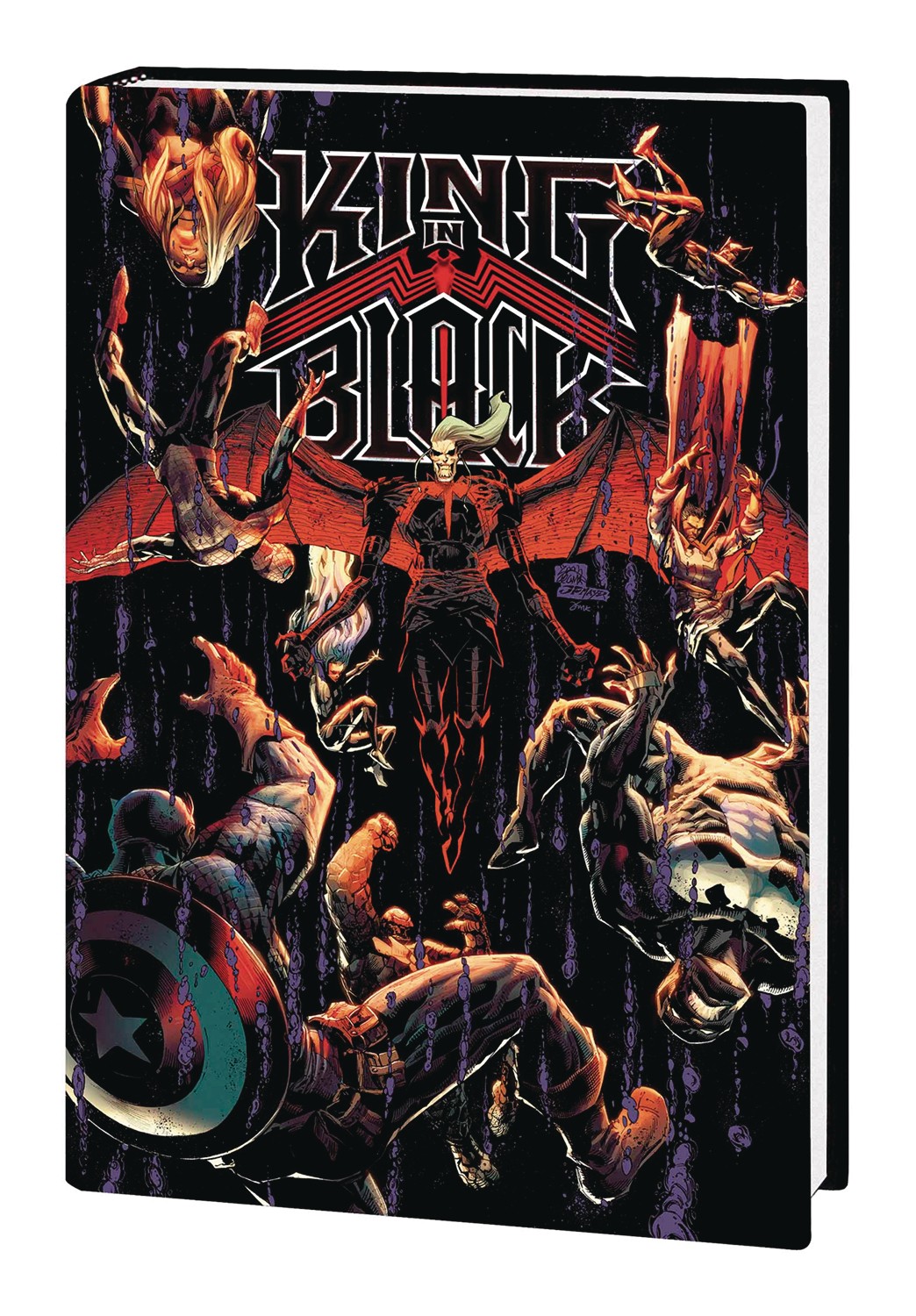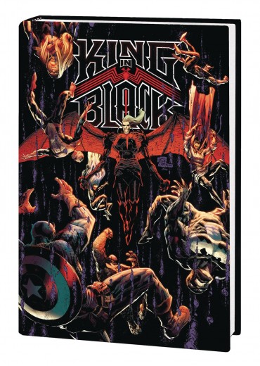Darkness reigns in the Marvel Universe! After a campaign of terror across the galaxy, Knull - ancient and malevolent god of symbiotes - reaches Earth with an endless army of symbiote dragons at his command! The King in Black is a force unlike any ever faced by Venom and the rest of the planet's heroes - but now Spider-Man, the Avengers, the Hulk, the Fantastic Four, the Sub-Mariner and more must battle an endless wave of darkness! Outgunned and badly outnumbered, can anyone possibly survive Knull's symbiotic onslaught? Or will they all be forced to bow to the King in Black? Featuring every epic chapter in one monstrous, black-hearted volume! Collecting KING IN BLACK #1-5; KING IN BLACK: IMMORTAL HULK, IRON MAN/DOCTOR DOOM, BLACK KNIGHT, MARAUDERS, BLACK PANTHER, CAPTAIN AMERICA, WICCAN AND HULKLING, SPIDER-MAN, SCREAM and GHOST RIDER; KING IN BLACK: GWENOM VS. CARNAGE #1-3; KING IN BLACK: NAMOR #1-5; KING IN BLACK: PLANET OF THE SYMBIOTES #1-3; KING IN BLACK: RETURN OF THE VALKYRIES #1-4; KING IN BLACK: THUNDERBOLTS #1-3; SYMBIOTE SPIDER-MAN: KING IN BLACK #1-5; BLACK CAT (2020) #1-3; DAREDEVIL (2019) #26-27; DEADPOOL (2019) #10; FANTASTIC FOUR (2018) #29-30; GUARDIANS OF THE GALAXY (2020) #10; MILES MORALES: SPIDER-MAN #23; S.W.O.R.D. (2020) #2-4; SAVAGE AVENGERS (2019) #17-19; SPIDER-WOMAN (2020) #7-8; THE UNION #1-2; VENOM (2018) #31-34; and KING IN BLACK HANDBOOK. Parental Advisory