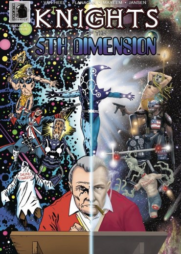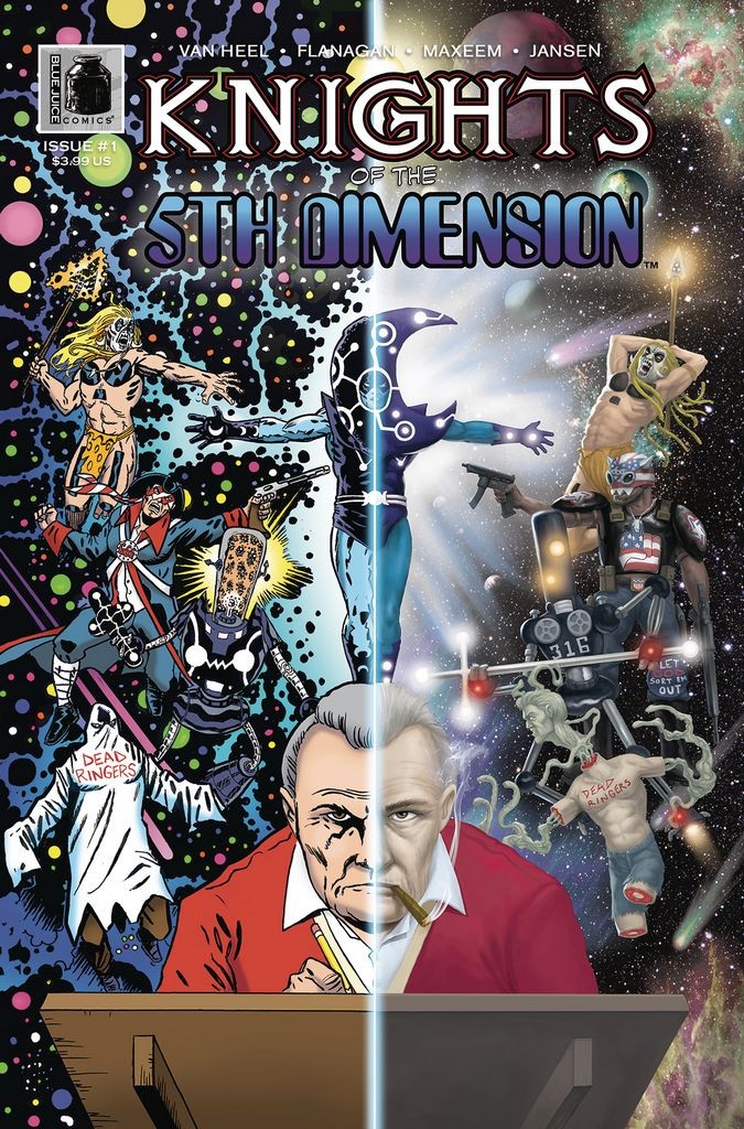 The stories of the Knights are REAL…and your dreams are sorely needed! William 'The Wizard' Gardener is a reclusive comic book creator and artist who has been the sole voice of the legendary PSYCHEDELIC KNIGHTS OF THE 5TH DIMENSION for decades. From comic books to toys and action figures, from cartoons to film, William is the latest of a long line of artists, poets, writers & musicians tapped to inspire creativity in man in order to combat Vanta Black's spread of self-doubt, despair and hopelessness in our world. But William grows old and tired, and his once-revered comic book series is now relegated to flea markets and bargain bins across the world. Years ago, William enlisted the help of up-and-coming writer/artist Kurt 'The Great One' Gideon to carry on the Knights legacy, but after a short and successful run, a disillusioned Kurt turned to fame and drugs, becoming an industry pariah. After years of silence, William needs Kurt's help again…but it's not with inking or coloring. Will Kurt continue William's legacy and join the long line of dreamers and artists who have kept Vanta Black from seeping into our dimension for generations? And in the comic-within-the-comic, join Kree-Gah, J0N 3:16, Professor Amorphous, The Damned Yankee, and the Spiral Architect as they battle The Primordial Evil, all while Vanta Black grows more powerful. Just past the edges of our understanding, Kurt realizes that his once colorful stories have real-world consequences and he is needed to journey beyond our dimension, to the parallel universe he once believed to be fantasy, and join the resistance in the ancient struggle between good and evil. Only then can he save both worlds. KNIGHTS OF THE 5th DIMENSION is a love letter to Bronze Age comic books and an homage to the Jack Kirby creations that still adorn comic book shelves, movie screens, and TV sets everywhere. From the minds of artist Walter Flanagan (BATMAN: THE WIDENING GYRE, AMC's COMIC BOOK MEN, TELL 'EM STEVE-DAVE), Writer Casey Van Heel (PALOOKA, THE CIVIL FOUR), and Colorist Wayne Jansen (METRO, CRYPTOZOIC MAN,) and published by Blue Juice Comics (THE ACCELERATORS, ANNE BONNIE, ÆTHER & EMPIRE). This battle will require more than dreamers…our world needs Knights.