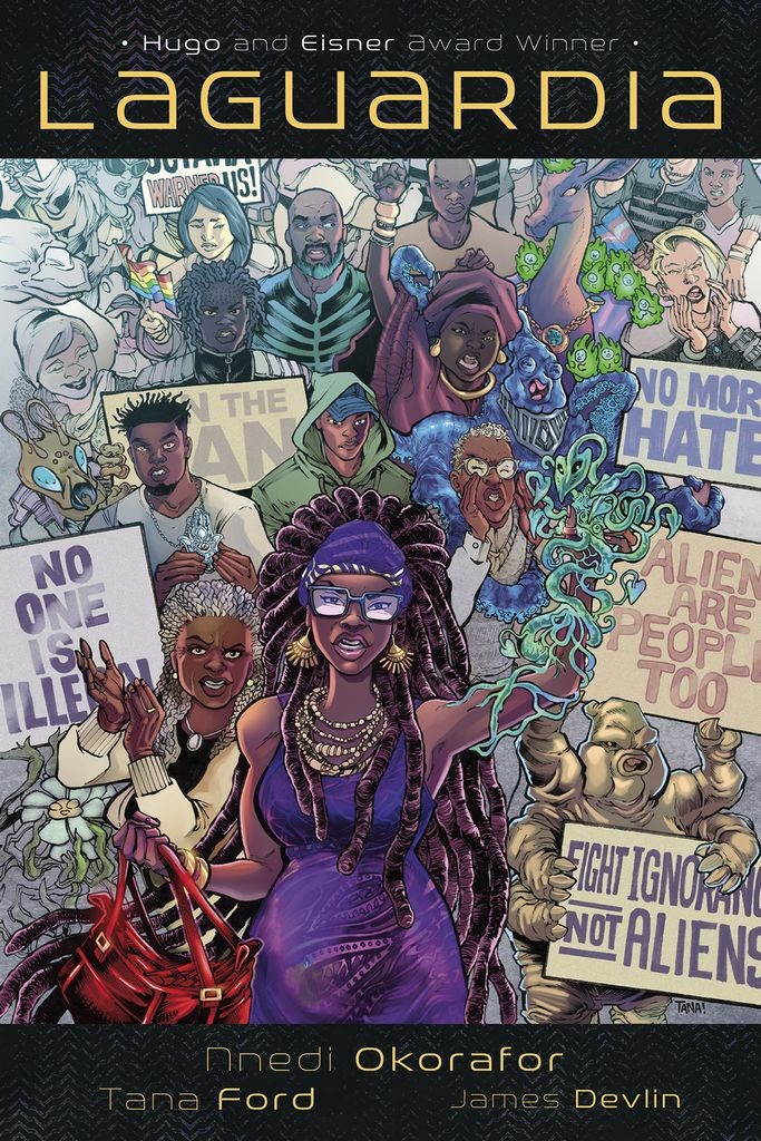 Deluxe hardcover edition of the Hugo and Eisner Award winning graphic novel! Exclusive extras include a chapter of Okorafor's script, a new cover and never-before-seen art from Ford, a behind-the-scenes look at the creation process, an extensive process art section, and more! On a planet Earth bursting with integrated extraterrestrial life, pregnant doctor Future Nwafor Chukwuebuka is fleeing Nigeria under mysterious conditions. Her fiancé doesn't know she's left, and she's smuggling an illegal, sentient plant into NYC. There, she'll be thrown into a vibrant immigrant community of humans and aliens, fighting for social justice and facing her past and her unexpected future. 'The best of Okorafor's prose-personal, political and deeply relatable.' -Newsarama