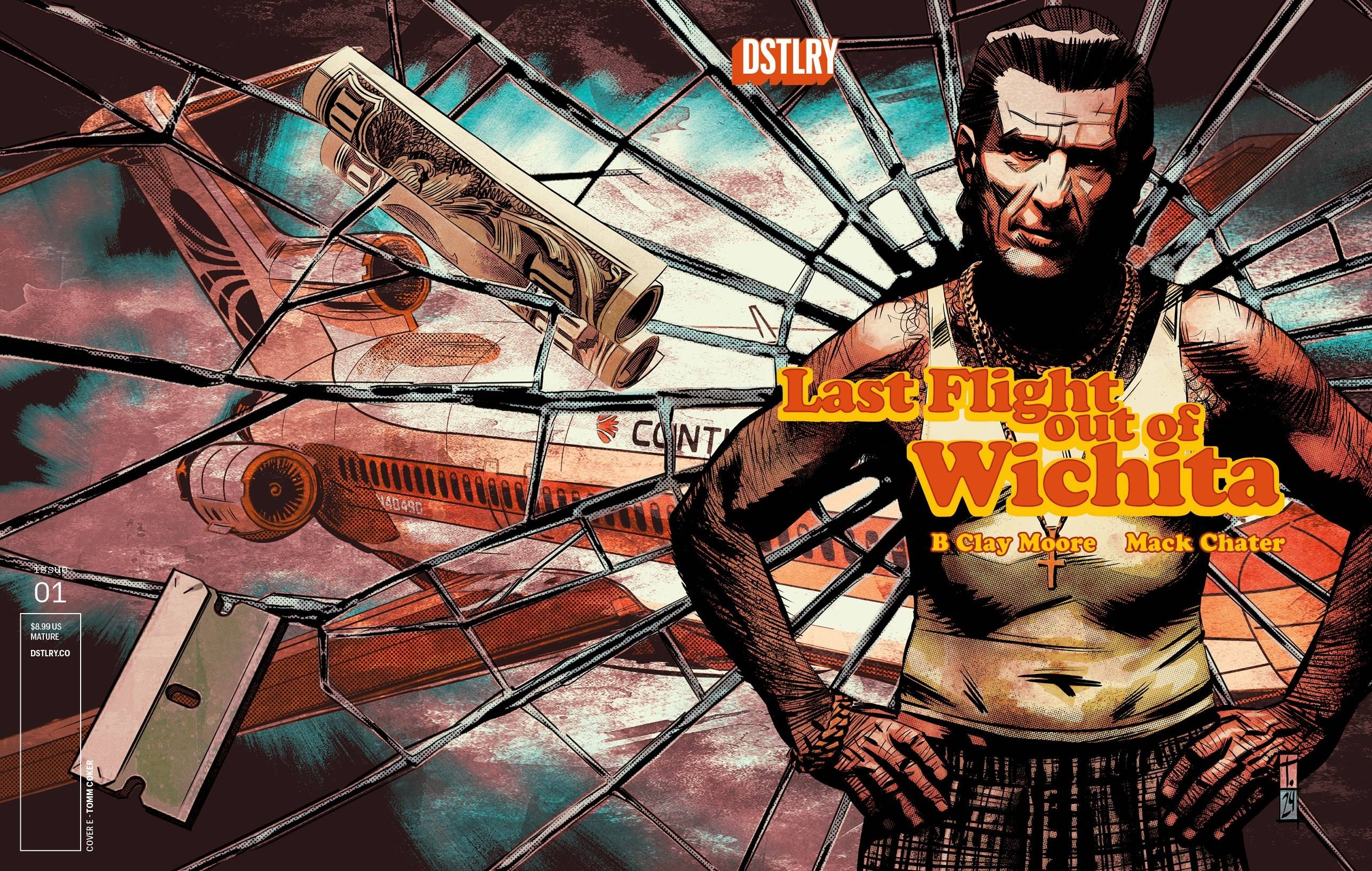 BRAND-NEW DSTLRY DEBUT from B. Clay Moore (Hawaiian Dick, Battle Hymn) and Mack Chater (Briggs Land). Two Vietnam vets in the heart of a depressed 1977 America make a bad decision in an effort to make ends meet and find themselves in the middle of mob double-crosses and the ensuing violent fallout. Soon, the full force of Kansas City's organized crime-including the city's 'black mafia,' the infamous Purple Capsule Gang-turns to Wichita looking for two desperate men, their money, and a few pounds of flesh. LAST FLIGHT OUT OF WICHITA is a thoroughly modern take on seventies noir, swinging from Las Vegas to Wichita and beyond. Every issue from DSTLRY is presented in our perfect bound Prestige format, featuring wraparound covers with spot gloss on robust cover stock, complemented by 48 pages of exquisite interior stock. It's the DSTLRY difference. For fans of FARGO, IN COLD BLOOD, and NO COUNTRY FOR OLD MEN.