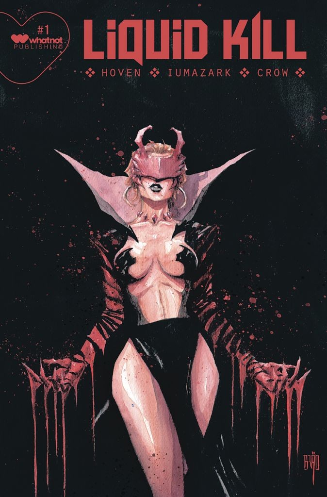 Brazilian pinup artist BRAO (Behemoth/Sumerian) joins the Whatnot Publishing team with this dynamic pose. LIQUID KILL follows sadist-slaughtering vigilantes as they encounter pure evil in a blood-soaked cyberpunk future (à la GHOST IN THE SHELL meets JOHN WICK) written by the creators of the critically-acclaimed series IT EATS WHAT FEEDS IT and artist Gabriel Iumazark (Boom! Studios). For the staff and clientele of a mysterious island hotel, it's just another night of luxury and vice until members of Liquid Kill (a notoriously violent, all-female militia), lay siege. Demanding compliance or death as they gather intelligence, the adrenaline quickly floods the halls as the team eliminates all threats with ease in their search for their kidnapped leader. That is until something is unleashed… something hungry. If there's anyone prepared for the evils on the island, it's these fearless killers, but when the undaunted begin to falter, their foe must be truly monstrous.