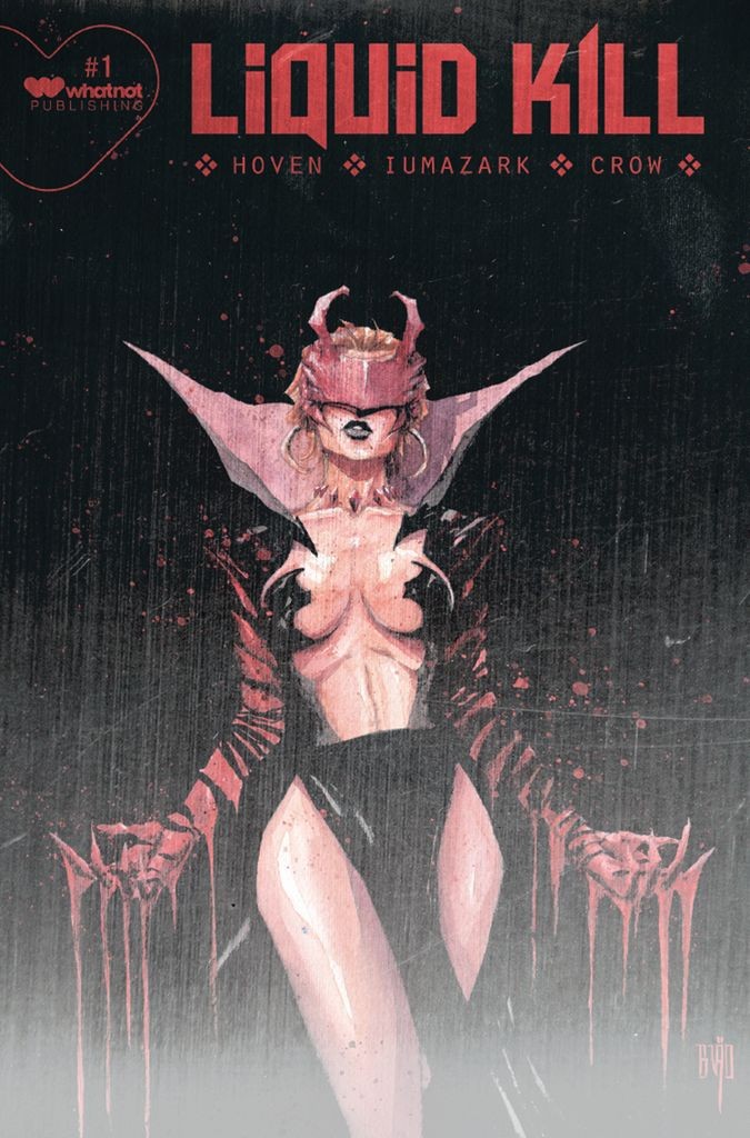 Brazilian pinup artist BRAO (Behemoth/Sumerian) joins the Whatnot Publishing team with this dynamic pose. LIQUID KILL follows sadist-slaughtering vigilantes as they encounter pure evil in a blood-soaked cyberpunk future (à la GHOST IN THE SHELL meets JOHN WICK) written by the creators of the critically-acclaimed series IT EATS WHAT FEEDS IT and artist Gabriel Iumazark (Boom! Studios). For the staff and clientele of a mysterious island hotel, it's just another night of luxury and vice until members of Liquid Kill (a notoriously violent, all-female militia), lay siege. Demanding compliance or death as they gather intelligence, the adrenaline quickly floods the halls as the team eliminates all threats with ease in their search for their kidnapped leader. That is until something is unleashed… something hungry. If there's anyone prepared for the evils on the island, it's these fearless killers, but when the undaunted begin to falter, their foe must be truly monstrous.