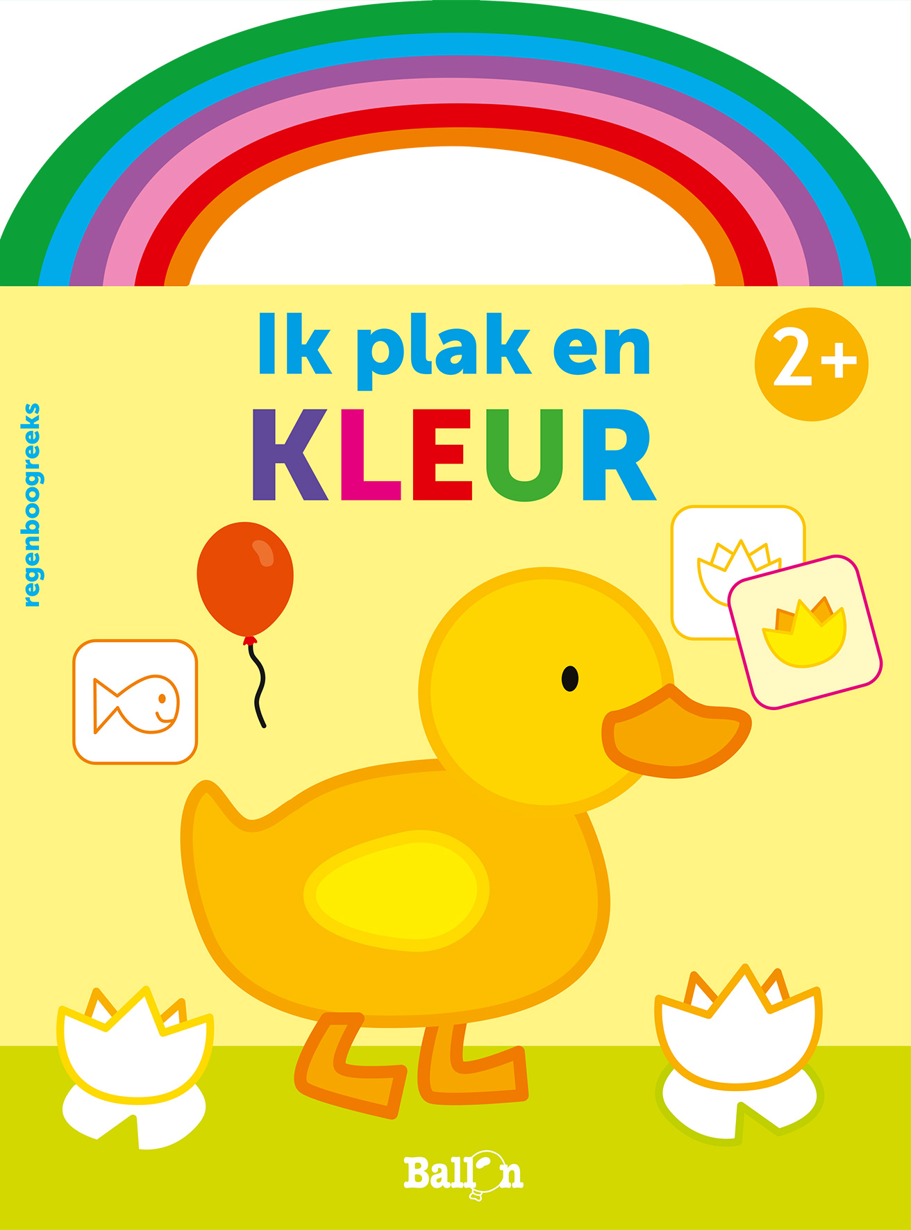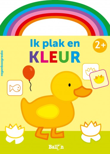 vanaf 2 jaar Met deze Regenboogreeks zijn de plakkende en kleurende kleuters helemaal thuis in de wereld van kleuren. Op elke spread staat telkens één kleur centraal. Aan de jonge creatieveling om het voorwerp in te kleuren en de juiste stickers erbij te plakken. Zo is het tafereeltje compleet.