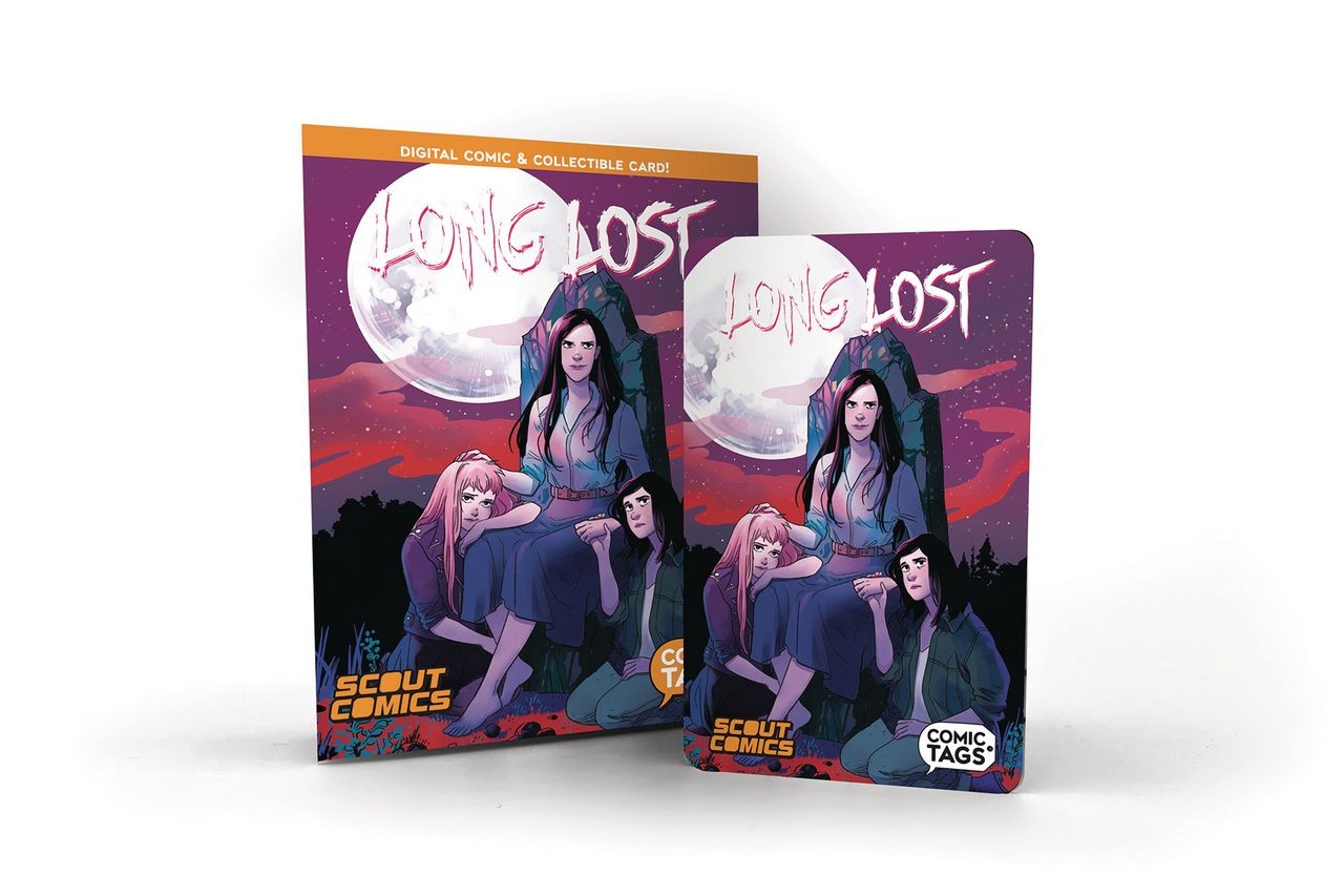 Making digital comics collectible! This plastic collectible card that contains a PDF of the complete Long Lost Volume 2 graphic novel! After venturing to their southern mountain home and learning some shocking news concerning their mother, Piper and Frances have gone missing and are now lost and alone in a place unknowable. Together, they must struggle and survive as they make their way back to Hazel Patch from where ever it is that they are.