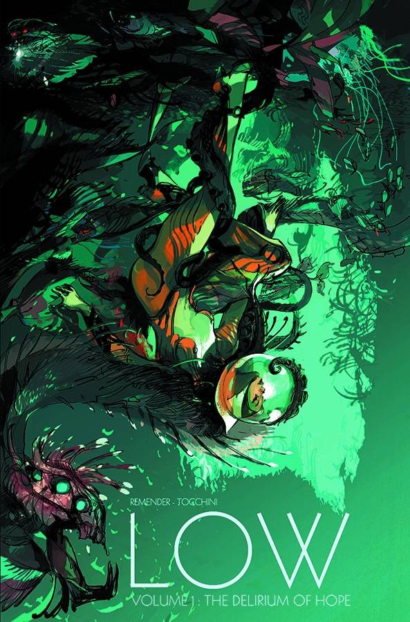 Millennia ago, mankind fled the earth's surface into the bottomless depths of the darkest oceans. Shielded from a merciless sun's scorching radiation, the human race tried to stave off certain extinction by sending robotic probes far into the galaxy, to search for a new home among the stars. Generations later, one family is about to be torn apart, in a conflict that will usher in the final race to save humanity from a world beyond hope. Dive into an aquatic fantasy like none you've ever seen before, as writer RICK REMENDER (BLACK SCIENCE, Captain America) and artist GREG TOCCHINI (Last Days of American Crime) bring you a tale mankind's final hour in the cold, deathly dark of the sea. Collects LOW #1-6.