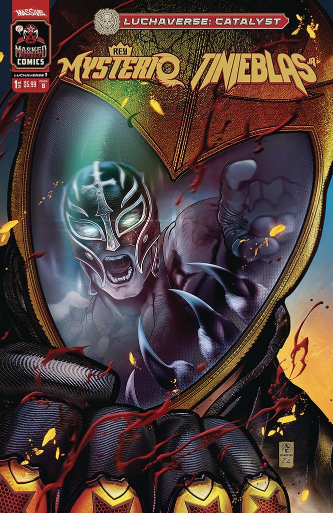 Leo Colapietro began their career at Zenescope Entertainment and went on to publish work with Valiant Entertainment, Chido Comics, and many more. It all starts here with the three-part launch of the epic new shared Luchaverse! The world's most famous luchadores battle in the ring by day, and serve humanity as monster hunters and world protectors by night. In this series, Masked Republic Comics and Massive Publishing bring back the glory and tradition of real-life lucha libre stars in comic books, setting the stage for a new era filled with epic cross-genre action in a shared universe. The first installment of the Luchaverse series is an action-packed double feature that is a perfect entry point for both long time fans of luchadores and new readers looking for genre bending adventure and universe altering mystery. First, Rey Mysterio, the world's most recognizable luchador discovers his legacy outside of the ring as the next in line to take on a great evil prophesied to return and plunge the world into darkness… Next, as heir to his own legacy as lead luchador monster hunter, Tinieblas Jr. takes on the legions of the damned and all manner of creatures that go bump in the night while trying to prevent ancient forces of the monster realm from conquering the universe!