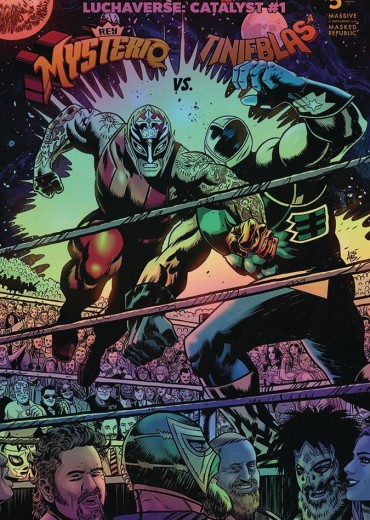 Andrew Belanger has done work for such publishers as DC Comics, Wildstorm, TKO, IDW, WWE, Boom, Valiant, Dynamite, Z2, Heavy Metal, and Image comics. This homage to DC Comics's iconic 'Superman vs. Ali' cover is now available through Massive Select as a foil variant. It all starts here with the three-part launch of the epic new shared Luchaverse! The world's most famous luchadores battle in the ring by day, and serve humanity as monster hunters and world protectors by night. In this series, Masked Republic Comics and Massive Publishing bring back the glory and tradition of real-life lucha libre stars in comic books, setting the stage for a new era filled with epic cross-genre action in a shared universe. The first installment of the Luchaverse series is an action-packed double feature that is a perfect entry point for both long time fans of luchadores and new readers looking for genre bending adventure and universe altering mystery. First, Rey Mysterio, the world's most recognizable luchador discovers his legacy outside of the ring as the next in line to take on a great evil prophesied to return and plunge the world into darkness… Next, as heir to his own legacy as lead luchador monster hunter, Tinieblas Jr. takes on the legions of the damned and all manner of creatures that go bump in the night while trying to prevent ancient forces of the monster realm from conquering the universe!