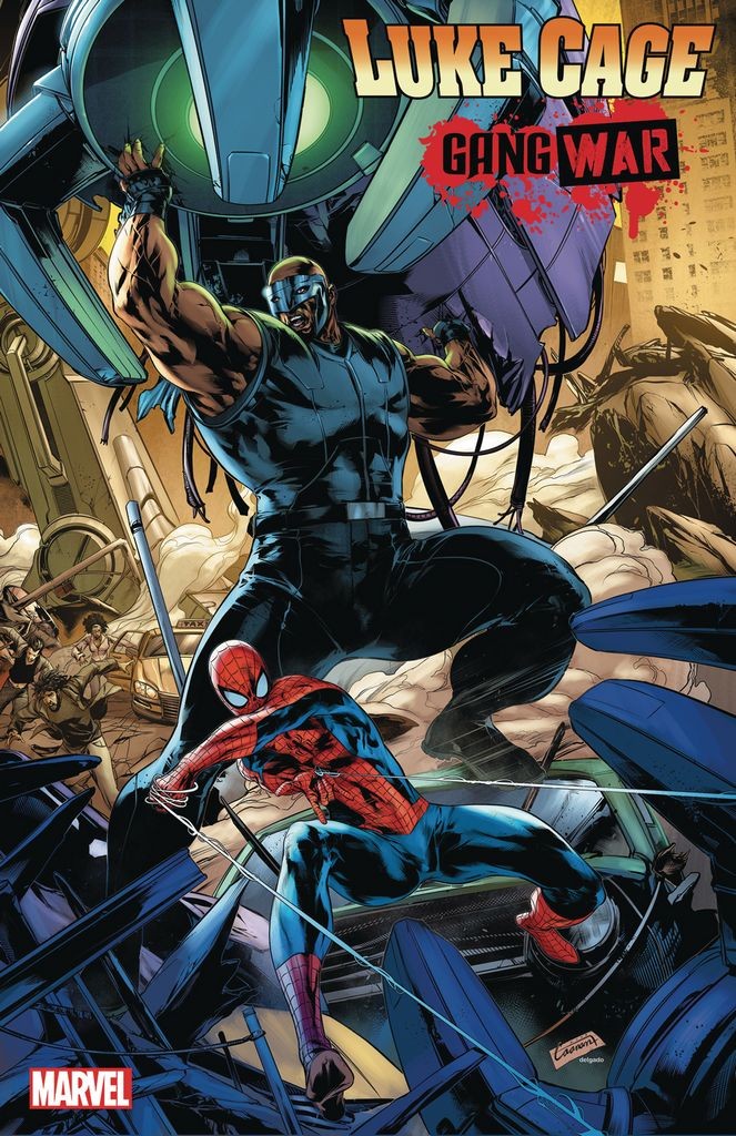 Unmasked and faced with giant Spider-Slayers, Luke Cage suits up as he never has before! New York City may survive this Gang War, but after breaking the anti-vigilante law, how can Luke still be mayor at the end? Will he even want to be? Rated T+