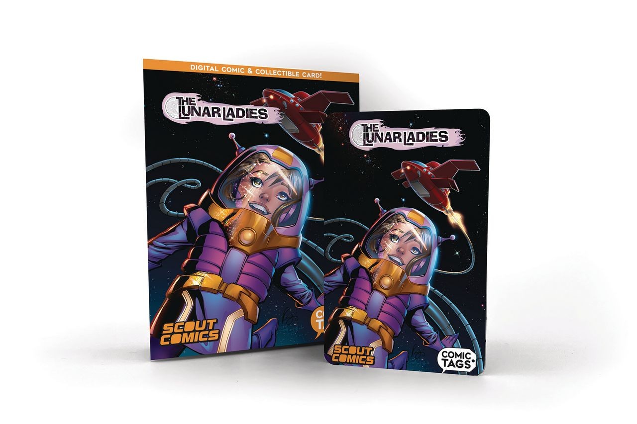 Making digital comics collectible! Now indvidually numbered plastic collectible card that contains a PDF of the complete Lunar Ladies Volume 1 graphic novel (chapters 1-3)! A million years ago, in outer space, a highly-advanced society of women lives under the surface of the moon. Their peaceful way of living is quietly fracturing from the inside, as political ideologies pit the queen of the moon against a geneticist hell bent on usurping the queen's power. The Lunar Ladies is an homage to the public domain character, Moon Girl, complete with Golden Age ray guns and laser rays.