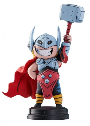 A Gentle Giant Ltd. release! With the world waiting to see how the new Thor will look and what she'll do in Thor: Love and Thunder, Gentle Giant Ltd. is going back to her childhood for a new animated-style statue! Based on the variant cover artwork of Skottie Young, this approximately 5-inch resin statue of a cute young Jane Foster Thor features detailed sculpting and paint applications and is limited to 3000 pieces. It comes packaged with a certificate of authenticity in a full-color box. Sculpted by Casen Barnard.