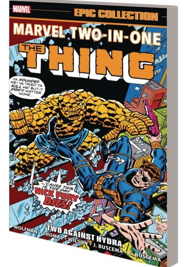 The ever-lovin' blue-eyed Thing is back, alongside the Marvel Universe's greatest stars and one from a world all his own - but first the Thing, the FF, the Invaders and the Liberty Legion travel back in time to World War II to battle the Third Reich! Then comes the Black Sun saga, spanning decades...and the cosmos itself! The action continues when Deathlok arrives on an assassination mission and the Thing must stop him! Thor, Iron Fist, Black Goliath, Nick Fury, the Sub-Mariner, Shang-Chi and Spider-Woman will all enter the fray, but can Mr. Fantastic free Deathlok's mind? And if that's not enough for you: The Bermuda Triangle sends the Thing back in time and he punches some dinosaurs! Collecting MARVEL TWO-IN-ONE (1974) #20, #22-36 and ANNUAL #1; and FANTASTIC FOUR ANNUAL #11. Rated T