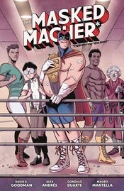 A struggling actor will take any opportunity that comes knocking… and lucks into an opportunity to be a pro wrestler! It's the 1930s and aspiring actor Tony Hollywood is about to make his big break! He's finally got an audition for the role that will change his life, but a flat tire sends him to a different stage. Breaking down outside a wrestling arena lands him a new part to play… the Masked Macher! Tony quickly learns there's a lot more to this wrestling gig than meets the eye, but hey, it pays. Collects issues #1-4.