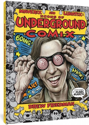 Perverted, Insane, Degenerate, Brilliant. Artist Drew Friedman pays tribute to the great underground comix creators from Z (Zap) to A (Arcade). With the publication of R. Crumb's debut issue of Zap in 1968, the Underground Comix revolution exploded, creating a major paradigm shift and blowing the lid off the traditional comic book. Maverix & Lunatix features 101 full page portraits (and more) by a cartooning icon in his own right, Drew Friedman, spotlighting the essential artists, writers, and editors who defined one of the great art and countercultural movements of the 20th century. Featuring R. Crumb, Gilbert Shelton, S. Clay Wilson, Melinda Gebbie, Art Spiegelman, Vaughn Bode, Trina Robbins, Bill Griffith, Jay Lynch, Sharon Rudahl, Larry Gonick, Rick Veitch, Joyce Farmer, Justin Green, 'Grass' Green, George DiCaprio, Diane Noomin, Harvey Pekar, Robert Williams, Howard Cruse, Dan O'Neill, Spain Rodriguez, Shary Flenniken, Richard Corben, and so many others… all of whom helped to reinvent an entire artistic medium and became icons of underground comix. Featuring a foreword by Marc Maron (WTF with Marc Maron) and an afterword by historian Patrick Rosenkranz (Rebel Visions: The Underground Comix Revolution 1963-1975), each portrait in Maverix & Lunatix is also accompanied by a short biography of its subject by Friedman, making the book both a gorgeous art book and a valuable historical resource. Drew Friedman lives with his wife and collaborator, K. Bidus, in eastern PA. He is an award-winning illustrator/cartoonist whose clients have included The New York Times, MAD, The New Yorker, Howard Stern, and countless others. Marc Maron is an American stand-up comedian, podcaster (WTF with Marc Maron), writer, actor, and musician. Patrick Rosenkranz is widely acknowledged as one of the premiere scholars of the underground comix movement.