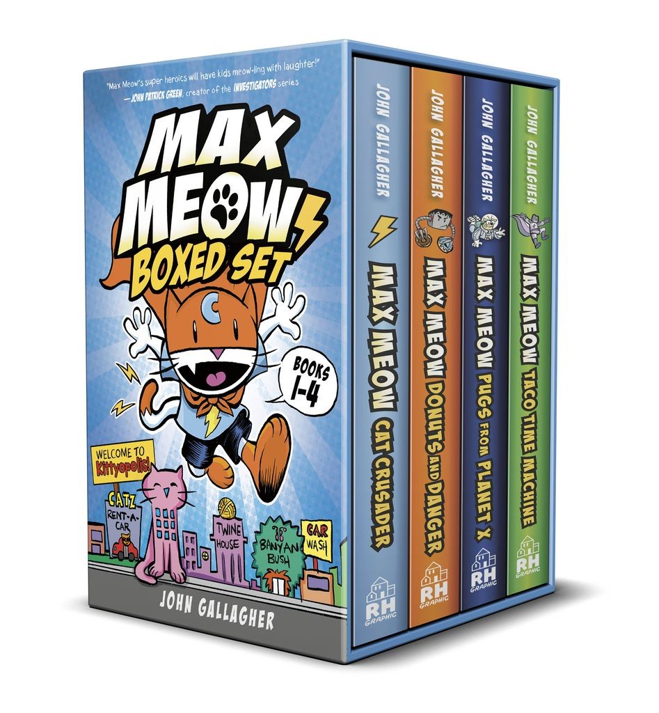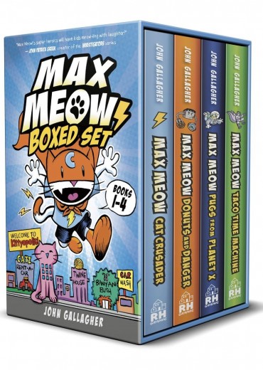 Meet Max Meow-a superhero with cat-itude! Can Max and his best friend save Kittyopolis from bad guys? Find out in the first-ever Max Meow boxed set with the first four graphic novels in the series! How did Max get his powers? Why did Max eat a radioactive space meatball? Who is Agent M?! Get ready for zany adventures and lots of laughs in this collectible boxed set that includes Max Meow: Cat Crusader, Max Meow: Donuts and Danger, Max Meow: Pugs from Planet X, and Max Meow: Taco Time Machine.