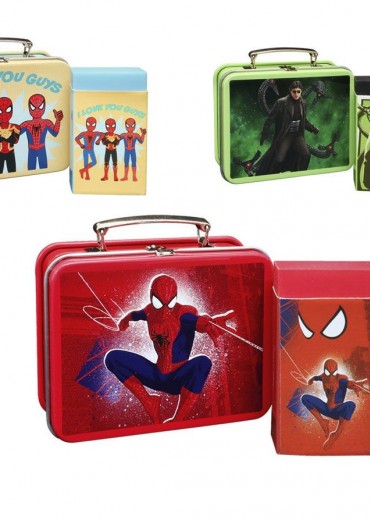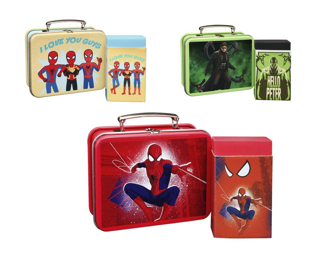 With great power comes cool collectibles! Make school (or your work desk) fun again with these tiny 2.5-inch metal lunchboxes, depicting artwork inspired by the epic adventure, Spider-Man: No Way Home, including the heroes, the villains, and the lawyers! Plus, each lunchbox contains a real pencil eraser! These blind-boxed collectibles come in ten different designs, with one of each in every 10-piece pop-up display. A Toy Sapiens product!