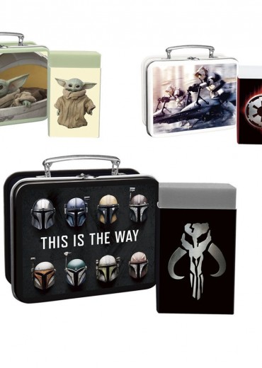 Your mission has never been this cute! Make school (or your work desk) fun again with these tiny 2.5-inch metal lunchboxes, depicting imagery from the hit DIsney+ series THe Mandalorian, including DIn Djarin, Grogu and more! Plus, each lunchbox contains a real pencil eraser! These blind-boxed collectibles come in ten different designs, with one of each in every 10-piece pop-up display. A Toy Sapiens product!