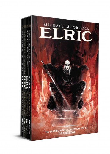 The boxed-set collection of the stunning comic adaptations of the classic Elric of Melnibon?novels by Michael Moorcock! Lavishly illustrated, these comic adaptations have been produced with the full and enthusiastic endorsement of Moorcock himself! COLLECTS THE RUBY THRONE, STORMBRINGER, THE WHITE WOLF & THE DREAMING CITY! Includes art cards!