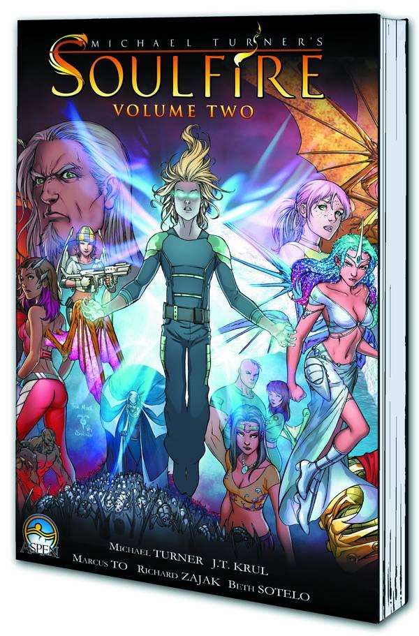 J.T. Krul - Story / Marcus To - Art / Beth Sotelo - Colors The epic second volume of Michael Turner's SOULFIRE! The Dark Lord Rainier has been defeated, and Malikai-the Samusara, set forth the return of the light. Yet, the return of magic has created problems across the globe, as Grace attempts to bring order to a world devoid of magic for thousands of years. Meanwhile, Rainier, in his endless crusade to rid the world of magic and all that it encompasses, decides the only way to extinguish the light is by fusing both technology and magic in horrific fashion-with terrifying results! Collecting together the sold out Zero issue, as well as issues #1 though #9, plus the rare 10-page Sonia story from Aspen Seasons Winter and the 20-page 'Resurgence' story previously only available in the Soulfire: New World Order mini-series, this is 296 pages of everything Soulfire volume 2! And if that's not enough, we'll be including a complete covers gallery featuring artwork by such artistic forces as Joe Benitez, Randy Green, Nick Bradshaw and Soulfire creator Michael Turner!! This complete SOULFIRE (vol 2) TPB: DRAGON FALL is a must for any Aspen, Soulfire, Michael Turner, or comic book fan!