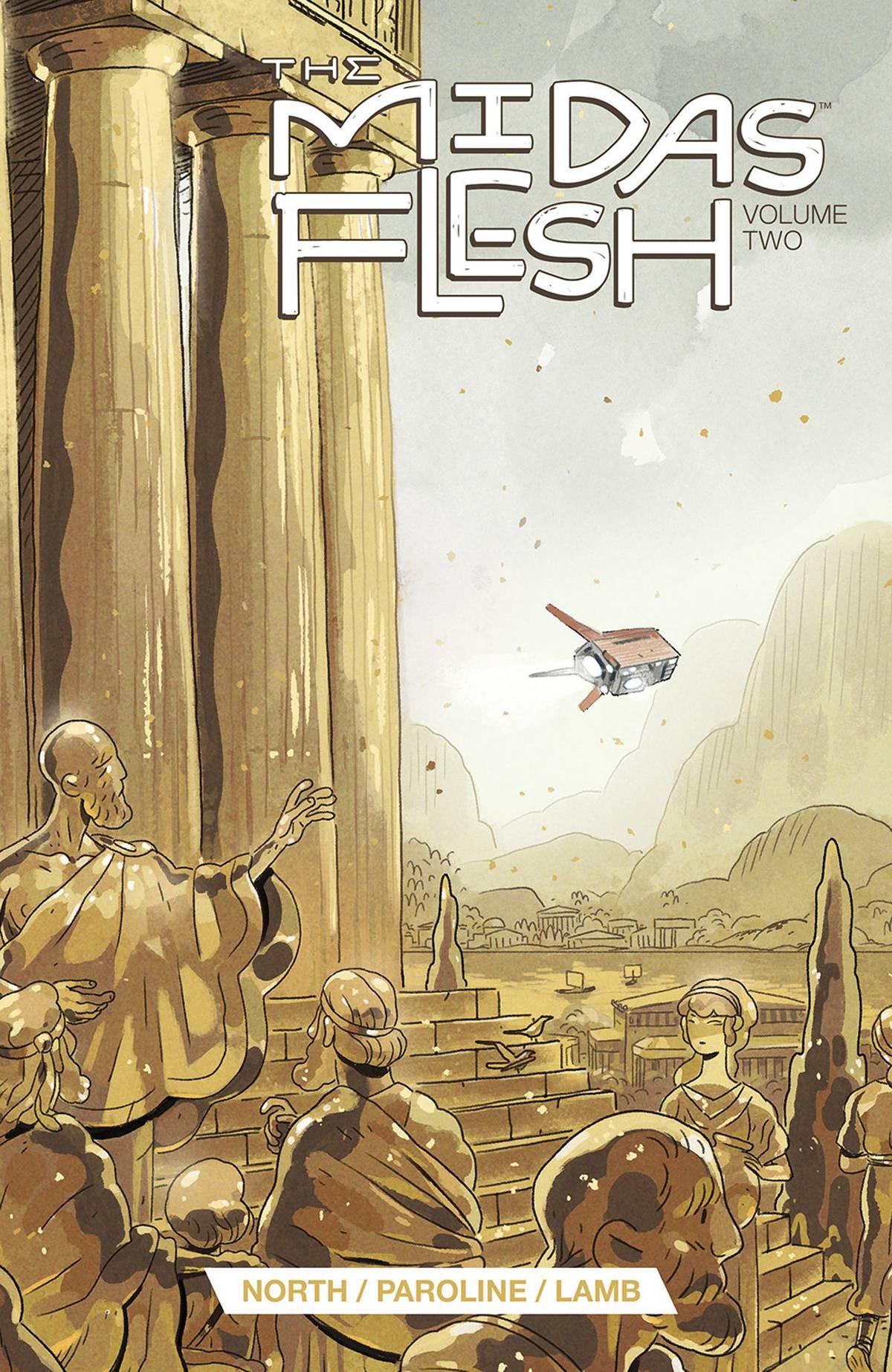 What if everything you touched turned into gold? Joey and her space crew have found King Midas' body and turned it into the most powerful weapon of all time. With the ability to transform any planet into gold within seconds, the team will find out if they have what it takes to actually put him to use. There will be greed. There will be vengeance. There will be gold. The second volume of Ryan North's (Adventure Time, The Unbeatable Squirrel Girl) debut original print comic book series The Midas Flesh features illustration dynamos Shelli Paroline and Braden Lamb (Adventure Time) and a conclusion that you will never see coming. Collects issues #5-8.