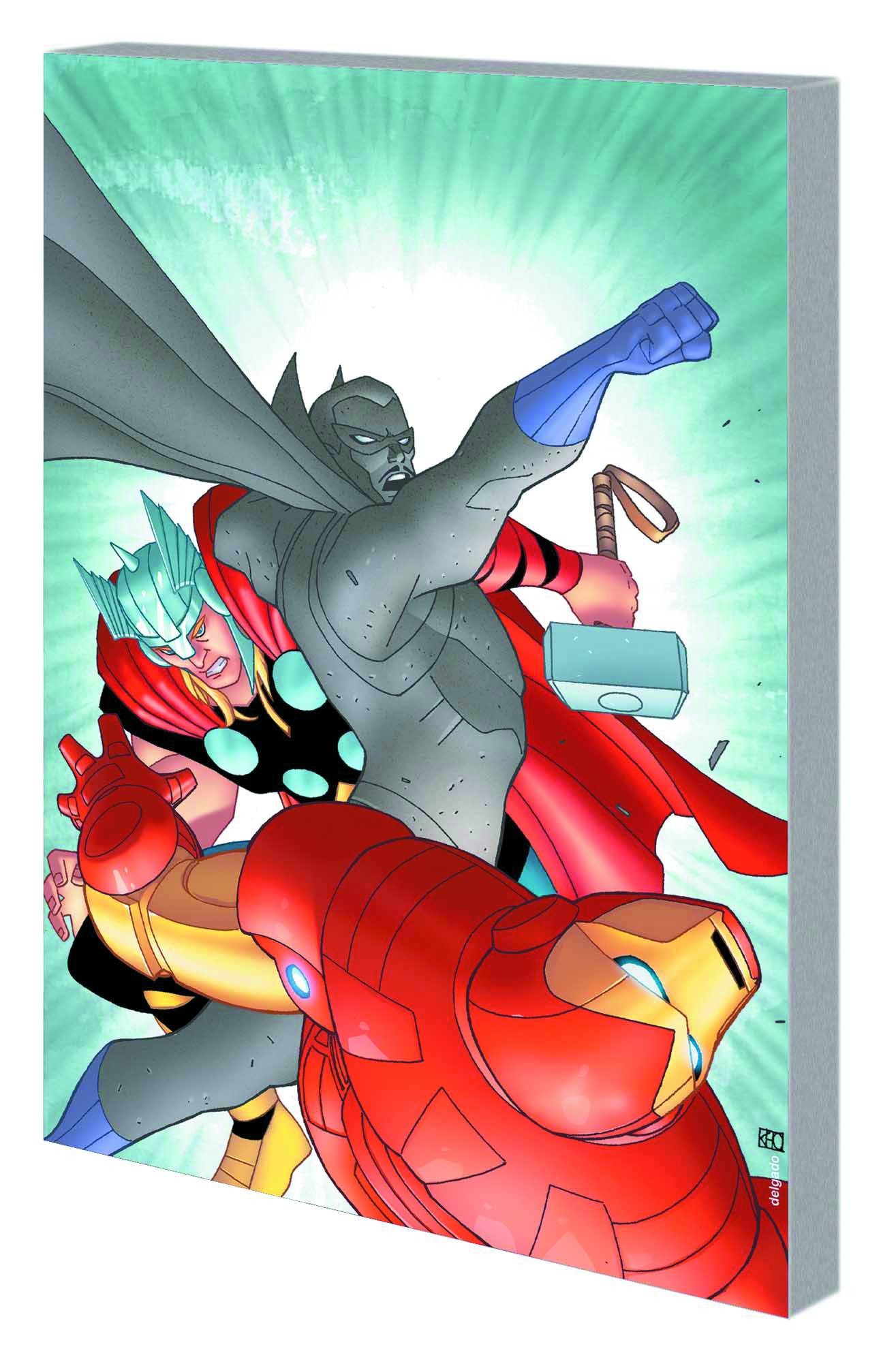 Based on the hit animated show on DISNEY XD, join CAPTAIN AMERICA, IRON MAN & THOR for a rousing adventure featuring daring & destruction in the Mighty Marvel Manner! See if Tony Stark's IRON MAN armor can hold up to the unstoppable fury of CRIMSON DYNAMO! Collecting AVENGERS: EARTH'S MIGHTIEST HEROES (2011) #3, material from MARVEL UNIVERSE AVENGERS EARTH'S MIGHTIEST HEROES #2.