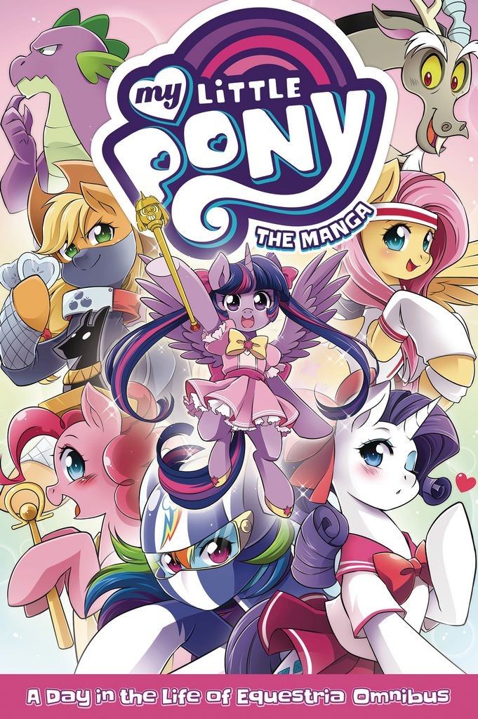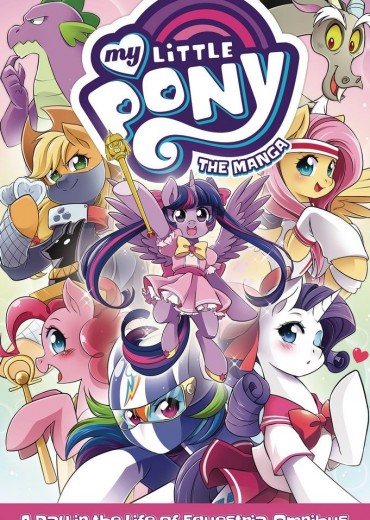 The 3-volume manga series set in the world of Hasbro's My Little Pony: Friendship is Magic, contained entirely in one omnibus! The world of My Little Pony comes alive in this distinctive manga series that spotlights each of the Mane 6 and a host of other characters from the land of Equestria! When Pinkie Pie lends a hoof to help Twilight Sparkle and Spike clean up the castle Library, she discovers a mysterious mirror with the power to gaze into alternate realities. Upon entering the portal-like mirror, Pinkie Pie sets off a chain of events that could spell doom for Equestria! Follow this adventure-and many more-in this hilarious manga for fans of all ages!