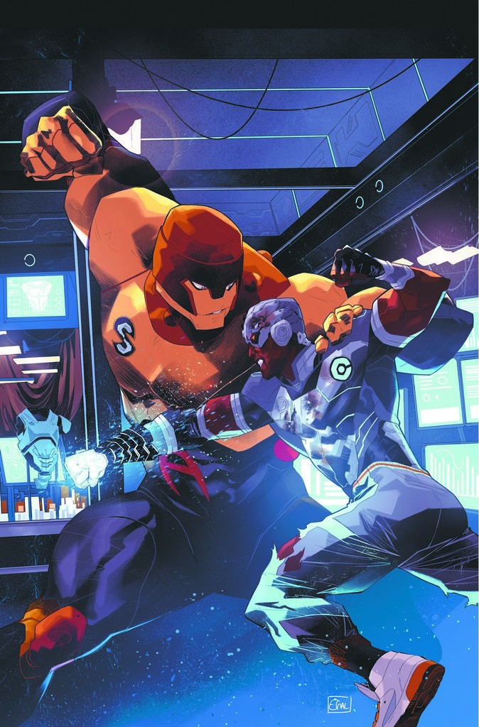 'A.I. SILAS STONE REVEALS ALL! The truth behind Solace CEO Markus Wilcox and his connection to Silas is uncovered. Cyborg needs to do some corporate espionage to get to the bottom of this shady activity--and if that wasn't enough for Victor Stone to deal with, an old enemy from his Teen Titans days is on the Solace payroll. Teen Titans animated series villain Atlas makes his DC Comics debut and is ready for a rematch!'