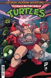 In order to bring the Pantheon to Earth and kick off his plans for conquest, Old Hob has been working with Krang to repair a damaged interdimensional portal. Instead of opening the gateway to the dimension that the Pantheon is stranded in, their efforts cause a wibble wobble in the space-time continuum, something that not only returns to Krang one of the evil Utroms' most prized possessions, but also delivers three evil Nega-Turtles to New York City. (I guess we all know who the Heroes in a Half Shell will be facing off against this month!)