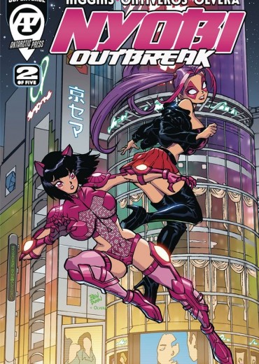 BOLD BAD-GIRL ACTION! SERIOUS SOCIAL ISSUES! With Vira still on the loose, the Outbreak begins to spread to other areas of the city. Vira's civil rights come under fire as hard choices are made. Is it her fault she was born a G-nom? Does she not have rights? Find out in this issue! The Godfather of American Manga, Ben Dunn, delivers a dynamic duo-shot of a variant cover, as Nyobi and Vira leap through a Tokyo cityscape! Jump over to your retailer and reserve your copy today!