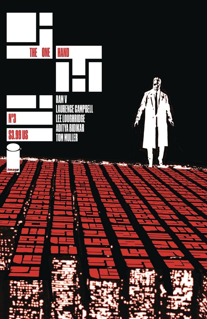 THE HIT MINISERIES CONTINUES! As the mysteries of the new One Hand Killer deepen, Detective Ari Nassar is starting to see connections everywhere. The walls are closing in as his prior arrests are questioned…and yet, why does he think the only person who call help is Odell Watts, the man Ari put away years ago for the very same crimes? Grippingly written by award-winning writer RAM V (The Many Deaths of Laila Starr, Swamp Thing) with hauntingly atmospheric art and covers by LAURENCE CAMPBELL (Old Haunts , BPRD: Hell on Earth) and LEE LOUGHRIDGE (DEADLY CLASS), THE ONE HAND is a miniseries that will keep you guessing until the very end. For fans of Blade Runner, Ghost in the Shell, and Black Mirror.