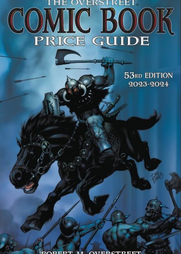 With his horned helmet and obscured facial features, the axe-carrying, armor-clad warrior sits atop a horse and permanently looks ready for battle, evoking whole stories from a single image: Frank Frazetta's Death Dealer. Now artist Dan Lawlis has brought the Death Dealer to the cover of The Overstreet Comic Book Price Guide #53. This edition of the Guide celebrates the 60th anniversaries of The Avengers and the storied Justice League of America/Justice Society of America crossovers. It also includes a look at the influential advertising comics of the pioneering R.F. Outcault, creator of The Yellow Kid and Buster Brown, and a spotlight on Frank Frazetta's Death Dealer. The Bible of serious comic book collectors, dealers, and historians since it was first published in 1970, The Overstreet Comic Book Price Guide is released each July by Gemstone Publishing. Compiled by founder Robert M. Overstreet with contributions from an extensive roster of Overstreet Advisors, the Guide offers insight into the complex and exciting comic book market.