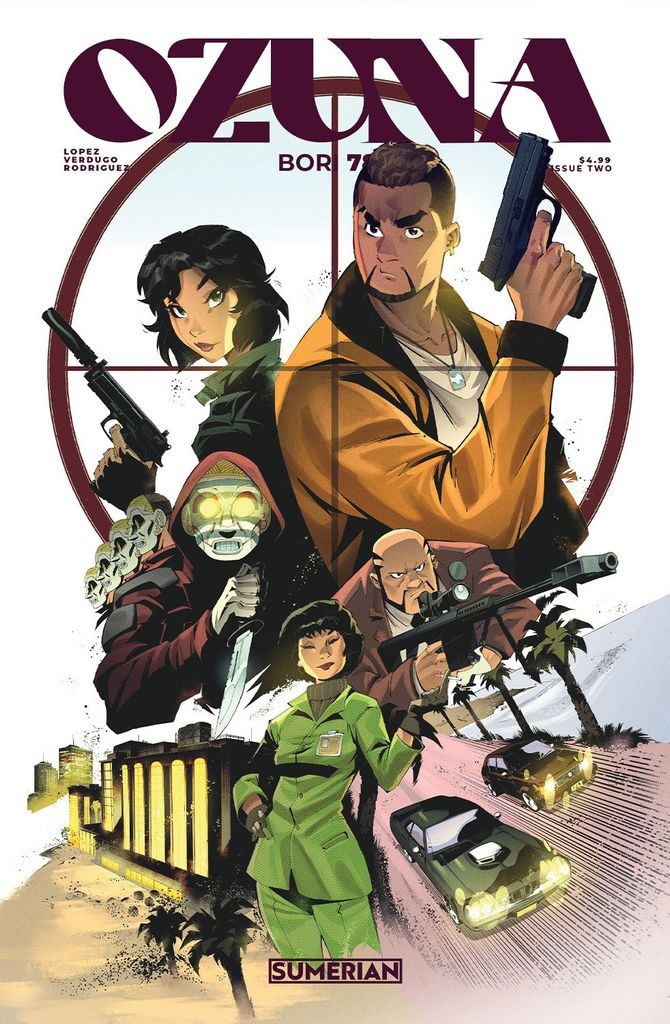 Series artist Pablo Verdugo, who has designed covers for IDW's Teenage Mutant Ninja Turtles, cover and interiors for Mad Cave's Hollywood Trash, and his own series, Mr. Beaver, from Action Lab. Ozuna, the global superstar and one of the best selling Latin artists of all time is Agent 787! 787 gets a trip down memory lane and ultimately declines an offer to join a new clandestine agency. But the growing riot during the protest against the statehood referendum threatens the integrity of Condado. Nothing can keep 787 from protecting his people.