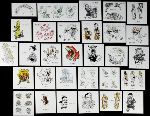 Lot de 30 stickers, pensés et édités par le musée Kim Jung Gi en Corée du Sud. Chaque sticker offre une illustration différente et originale. Ces stickers seront parfaits pour décorer des surfaces planes tel qu'un ordinateur portable ou une valise.