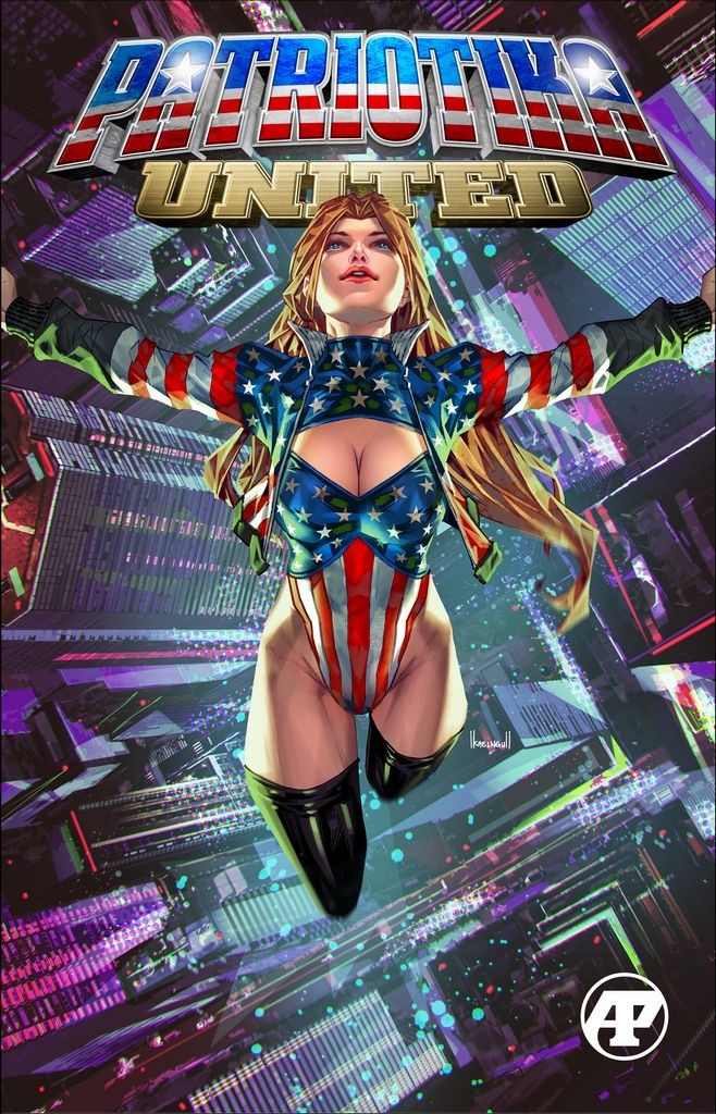 Fused with the descendant of the legendary goddess Athena, scrawny college student Erin can now become the mighty Patriotika. In the wake of her most recent battle, Patriotika finds herself de-powered in a prehistoric world with dinosaurs! How will Erin and Athena escape? And who is the mysterious yet beautiful Arcane?