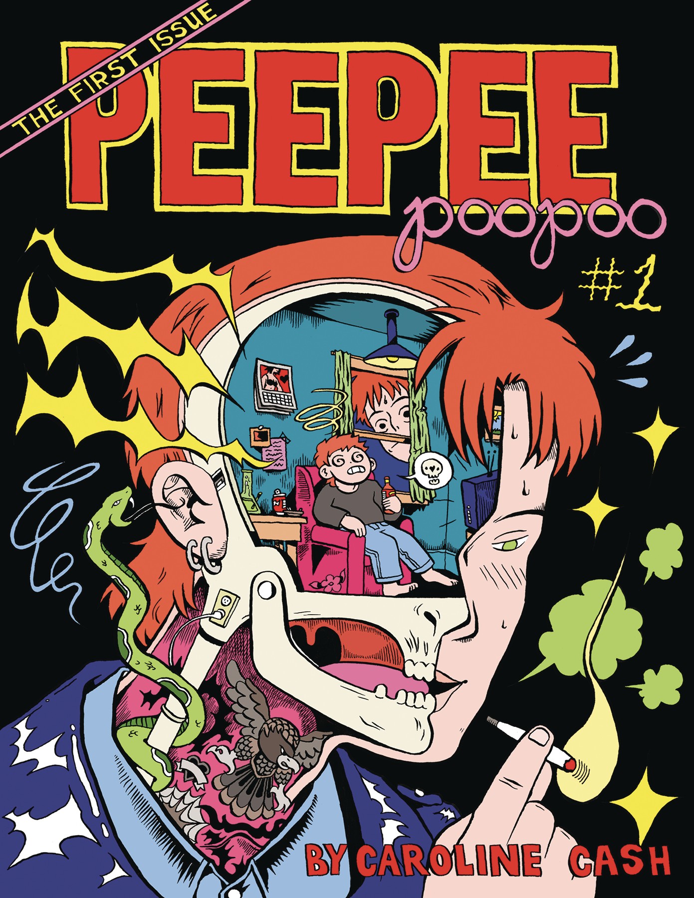 Four issues into the series and we finally get PeePee PooPoo #1! Was it time travel, or just a marketing move? The world may never know! In this issue: Caroline discovers a fresh start is surprisingly hard to make in 'Ah, Philly.' Romance blossoms in 'First Date,' a classic Alison Bechdel comic gets an update in 'Femme and Butch,' and a night out turns complicated in 'Stoned Again.' Caroline Cash's gay, modern take on the '60s underground comic continues to make readers say 'hell yeah.' As always, this issue is printed with a cardstock foil cover and a PeePee PooPoo sticker sheet.